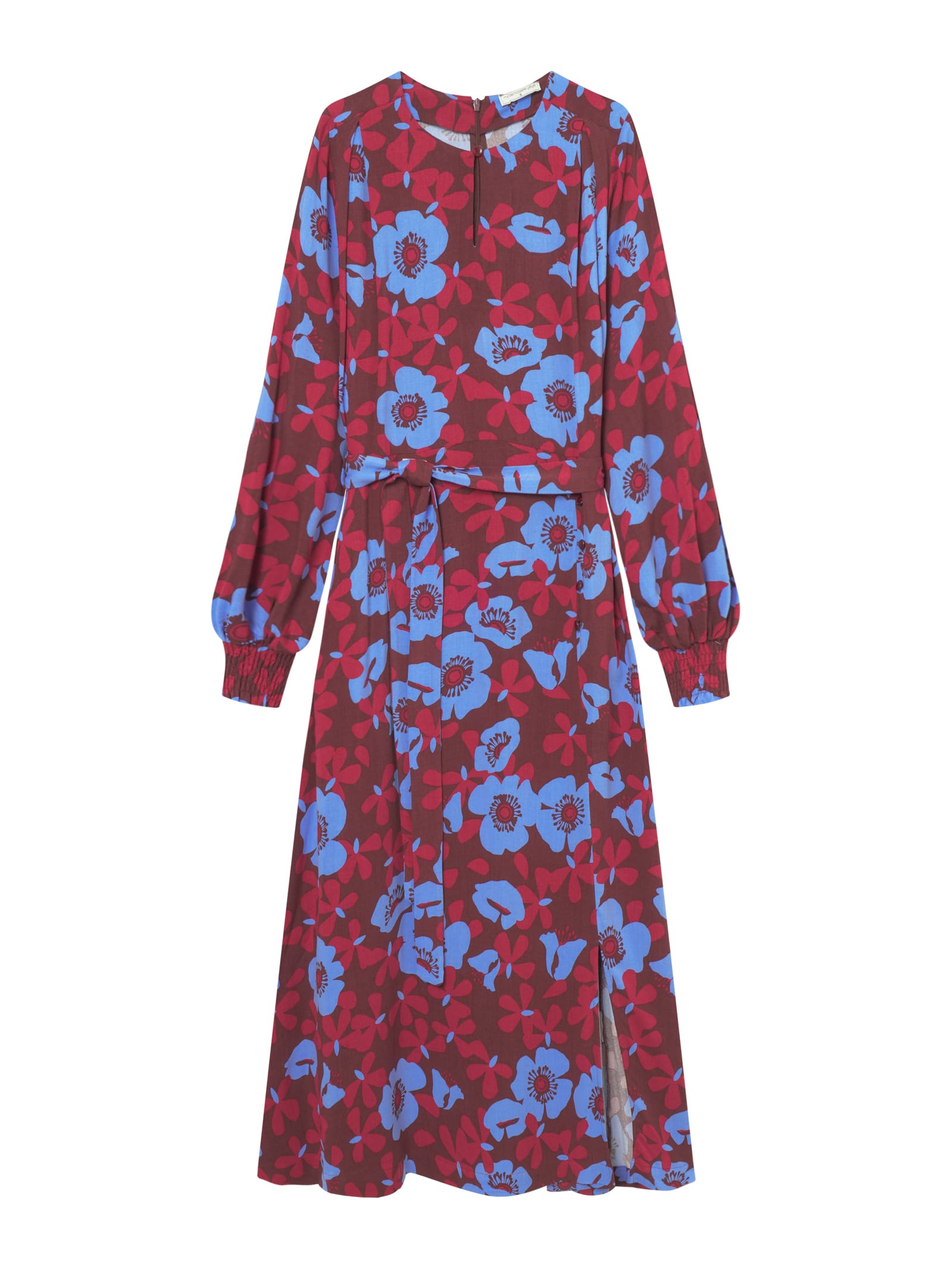 Einfach WOW! Dieses Kleid zieht alle Blicke auf sich. Der Blumen Print und die besonderen Details sind wirklich hinreissend Nachhaltig und zertifiziert Leichte Web-Qualität ohne Stretch Taillierte Passform leicht ausgestellter Saum Midi-Länge Rundhalsausschnitt Tropfenförmiger Schlitz mit Knopf am Halsausschnitt vorne Reisverschluss im Rückteil Weite Ballonärmel mit Smok Bündchen Faltendetail im Vorderteil Saumschlitz mit Zierknöpfen Seperates Bindeband-100% Viskose (LENZING™ ECOVERO™) Maschinenwäsche 30°C Kein Trockner Einlaufwert max. 3% Made in Turkey Landtransport Geprüfte Produktionsstätten – Faire Produktion 100% Vegan – Wir verwenden grundsätzlich keine Materialien tierischen Ursprungs